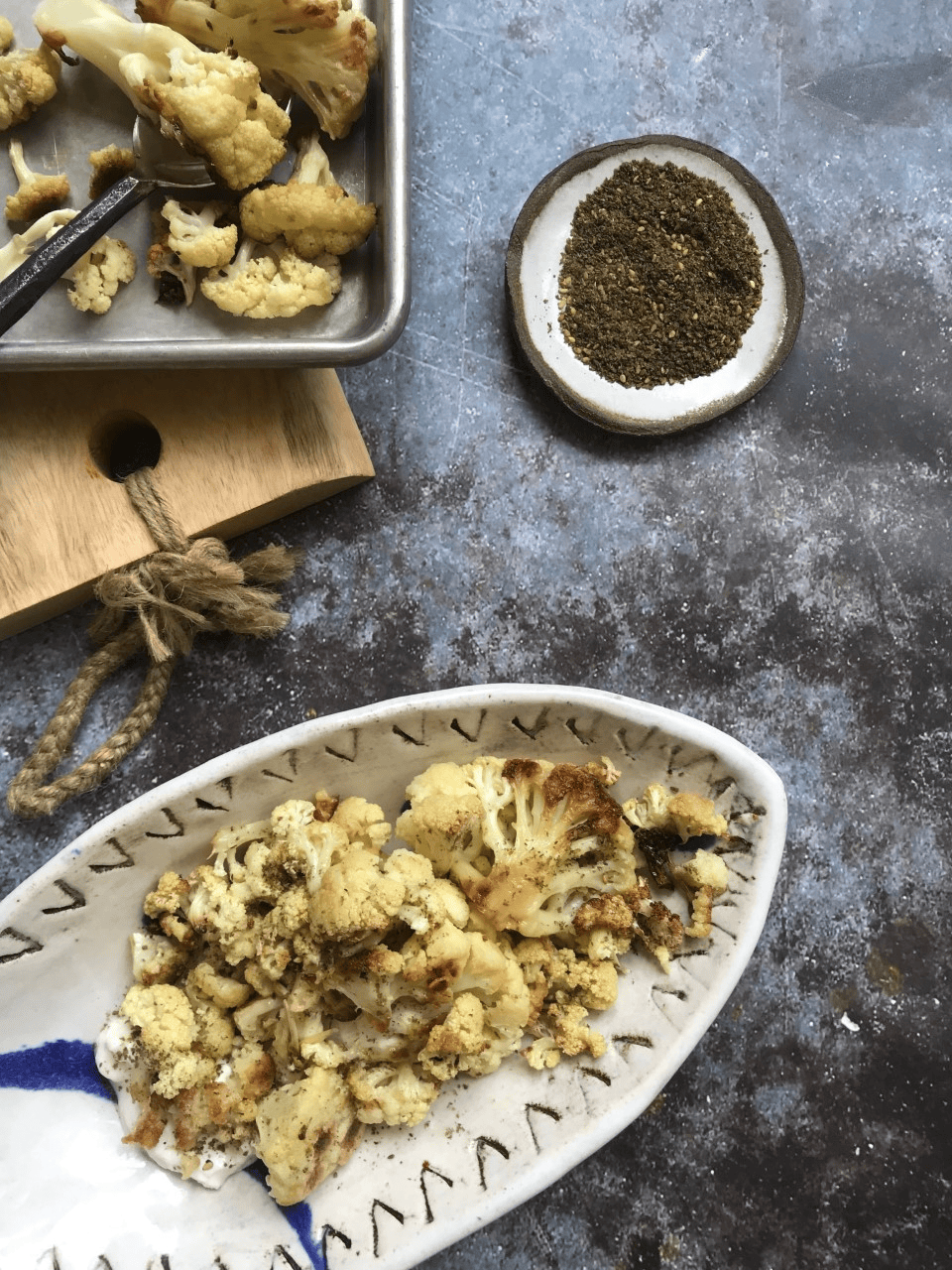 Talya likes her roasted cauliflower plain, while Tal and I enjoy the additional flavors added by the za’atar and Greek yogurt.